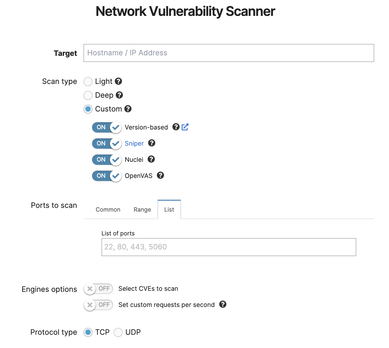 - Top 10 / Top 100 / Top 1000 / Top 3845 ports (check out this dedicated article to see what ports are being scanned for each option)