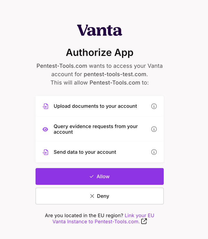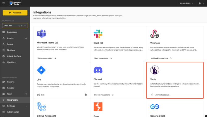 Send your Pentest-Tools.com reports to Vanta within few clicks.