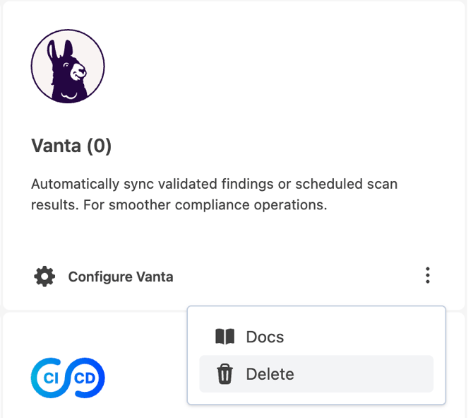 To remove the integration, delete it from both your Vanta account and our platform’s integrations section.